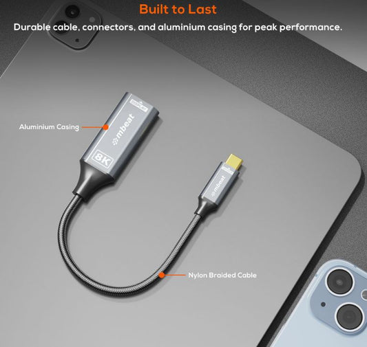 mbeat® Tough Link 8K USB-C to HDMI Adapter - Space Grey Up to 48Gbps (HDMI 2.1) Up to 8K (7680 x 4320) @60Hz