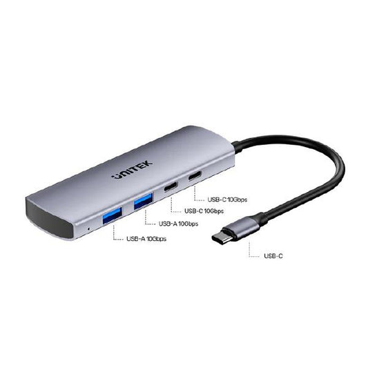 Unitek 4-in-1 uHUB Q4 USB-C Hub, 10Gbps, USB-A x2, USB-C x2, Grey, Unitek Hook Color Box