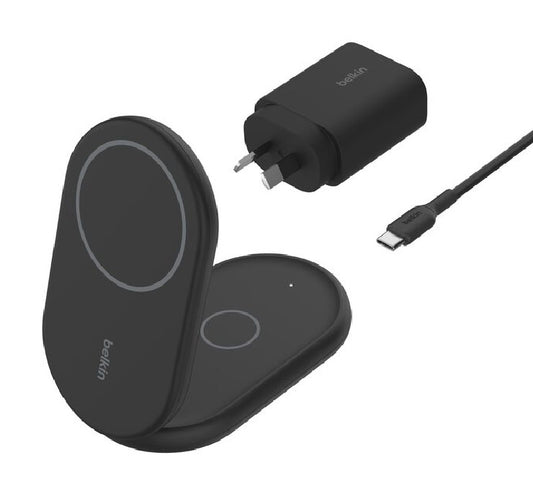 Belkin BoostCharge 2-in-1 Magnetic Foldable Qi2 Wireless Charger + 36W Wall Charger + USB-C Cable (1.5M) - Black (WIZ028auBK),15W, 2 Years Warranty