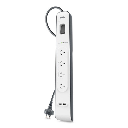 Belkin SurgePlus 4-Outlet 2-Meter Surge Protection Strip With Two (2.4) Amp USB Charging Ports - White (BSV401au2M), 2M Power Cord, 2 Years Warranty