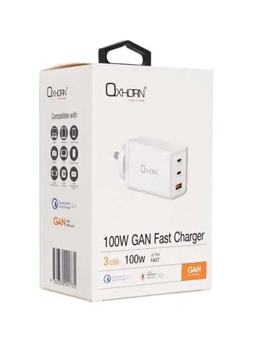 Oxhorn Charger Accessories AC 100W GaN Type C fast Charger 3 Ports 2xUSB-C 1xUSB-A PD3.0 QC4.0+ PPS for Laptop/Mobile/Tablet/Other Device White