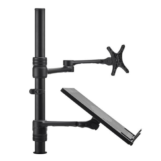 Atdec Notebook-Monitor Combo Mount on Post. Max load: 8kg (Flat), 5.5kg (curved). Up to 32" screens. Up to 18" notebooks (8kg). VESA 100x100. Black