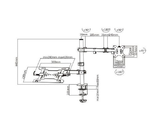 Brateck Economical Double Joint Articulating Steel Monitor Arm with Laptop Holder Fit Most 13'-32' Monitors, Up to 8kg/Screen VESA 75x75/100x1009 (LS)