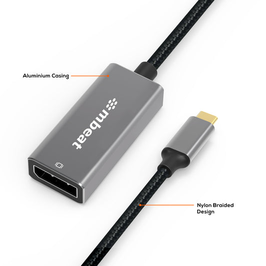 mbeat® Elite USB-C to Display Port Adapter -Converts USB-C to DisplayPort female port, 4K@60Hz (3840×2160), 15cm - Space Grey Weight: 30g