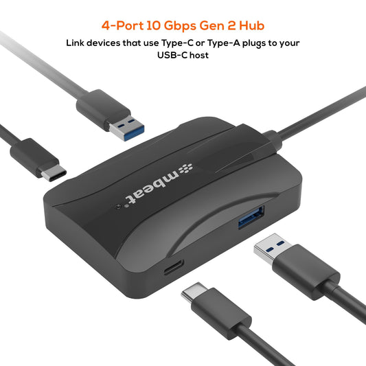 mbeat® 4-Port 10Gbps USB-C 3.2 Gen2 Hub (2 USB-A 2 USB-C) Sleek, compact, and portable Cable Length: 16cm USB-C and Thunderbolt 3 10Gbps.
