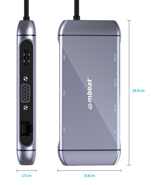 mbeat® Elite X9 9-in-1 Multifunction USB-C Docking Station 1x HDMI, 1x VGA 1x USB-C Power Delivery 100W, 3x USB 3.0, MicroSD/SD Card, 1x RJ45