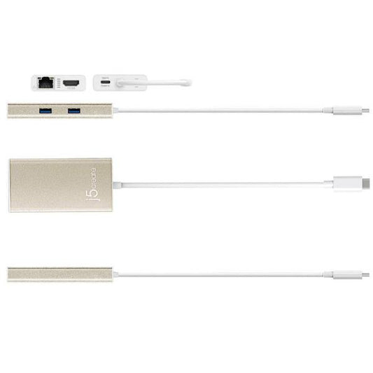 J5create JCA374 USB-C TYPE-C Multi adapter - (USB-C to 2 x USB 3.0, Gigabit Ethernet port, HDMI, USB-C PD Pass through Power Delivery port)