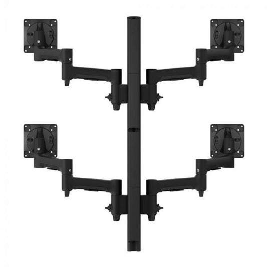 Atdec AWMS-4-4675 Quad 460mm Monitor Arms on 750mm Post. 12kg Flat Screens, 10kg Curved Screens, Heavy-Duty F Clamp Desk Fixing, Black
