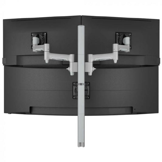 Atdec AWMS-2-4640 Dual Monitor Swing Arms on 400mm Post. Max Load: 12kg (flat), 10kg (curved), Heavy Duty Desk Fixing, VESA up to 100x100. Silver.