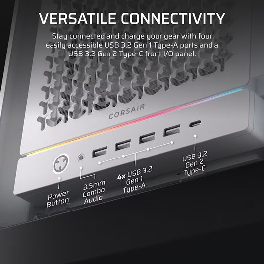 Corsair FRAME 4500X LX-R RGB LINK Panoramic Glass Mid-Tower PC Case White: up to 460mm GPU, 360mm radiators, rich I/O, and versatile fan/rad mounts