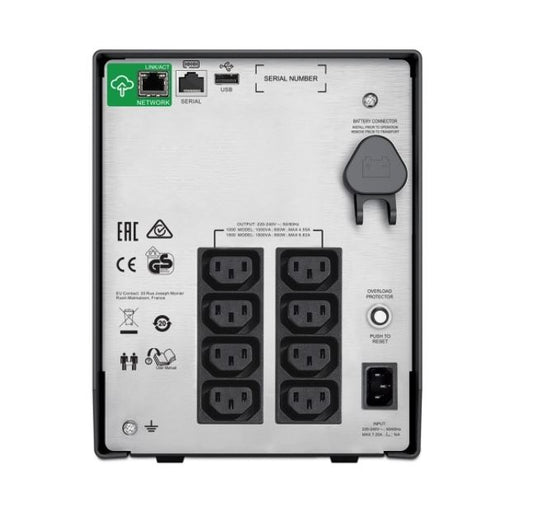APC Smart-UPS C, Line Interactive, 1500VA, Tower, 230V, 8x IEC C13 outlets, SmartConnect port, AVR, Graphic LCD