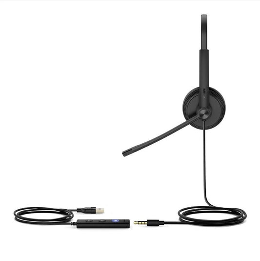 Yealink YHS34 Dual Wired Headset with QD to RJ Port, Noise-Canceling Headset, Binaural Ear, RJ9, QD Cord, Leather Ear Piece, Hearing Protection