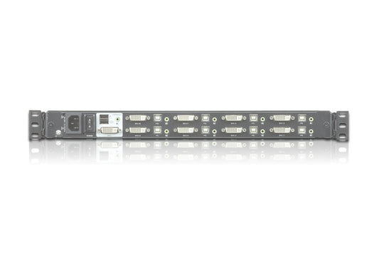 Aten Rackmount KVM Switch Single Rail 8 Port DVI USB w/ 17.3' LCD Display, 2x Custom KVM Cables, 1920x1200@60hz Display, LED Illumination