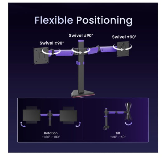 Brateck LDT89-C024L Matte Black Amethyst Articulating RGB Lighting Gaming Dual Monitor Arm, Fit Screen Size: 17'-32' (LS)