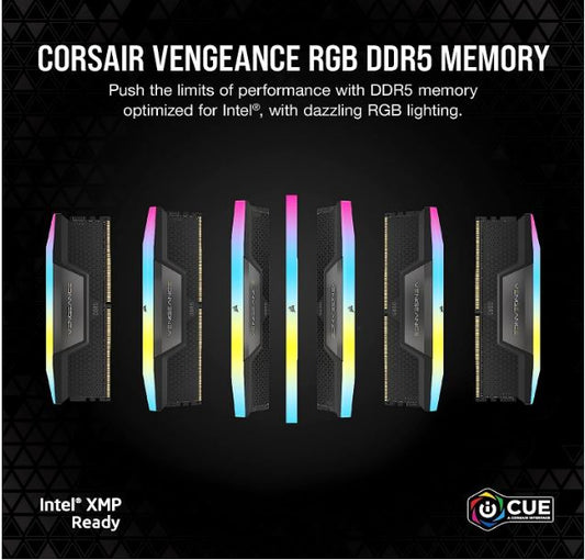 Corsair Vengeance RGB 64GB (2x32GB) DDR5 UDIMM 5600MHz C36 1.25V Desktop Gaming Memory Black Optimized