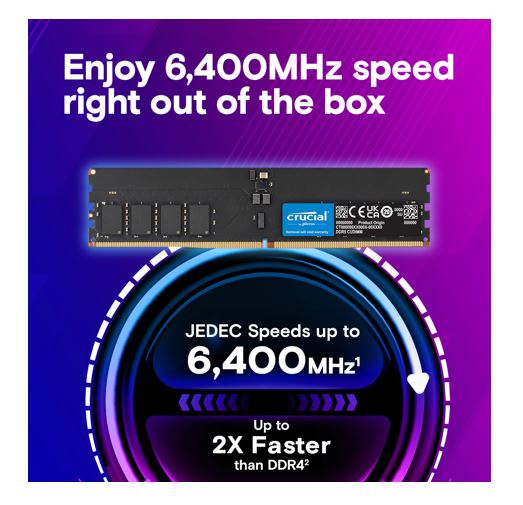 Crucial 32GB (1x32GB) DDR5 CUDIMM 6400MHZ CL52 Desktop PC Memory for Intel Core Ultra Processors AI PC