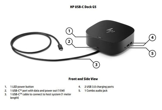 HP Dock G5 USB-C Docking Station - 100W Power Delivery 3xDisplays 2xDP 1xHDMI 4xUSB-A 1xUSB-C RJ45 Audio Combo for HP Notebook PC