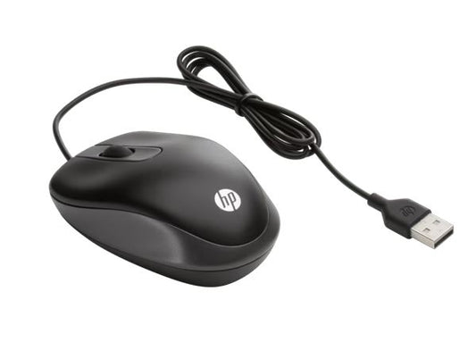 HP USB Wired USB-A Travel Mouse 1000 dpi 3xbutton Multi-OS Windows 7/8/10/11 Chrome OS Android Black 1YR WTY