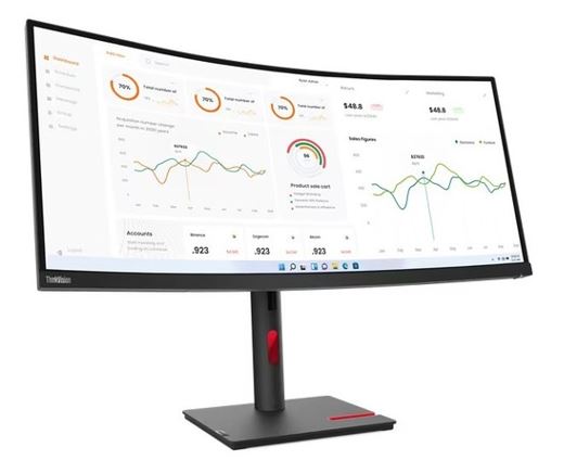LENOVO ThinkVision T34w-30 34' WQHD Monitor 1500R Curve 4K 3440x1440 21:9 Height Adjustable Tilt and Swivel DP HDMI USB-C input LAN 4xUSB3.2 Hub 3yr