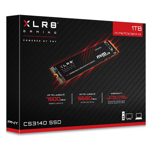 PNY CS3140 1TB NVMe Gen4 SSD for PS5 7500MB/s 5650MB/s R/W 700TBW 350K/700K 2M hrs MTBF 5yrs wty