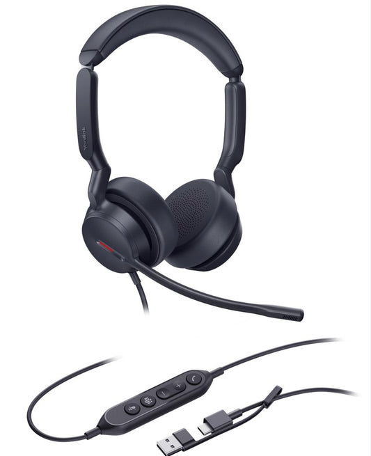 Yealink UH42 Dual UC USB-C/A USB Wired Headset, Noise-Canceling Microphone, Leather Ear Cushions, Controller, USB-C cord with USB-A adapter