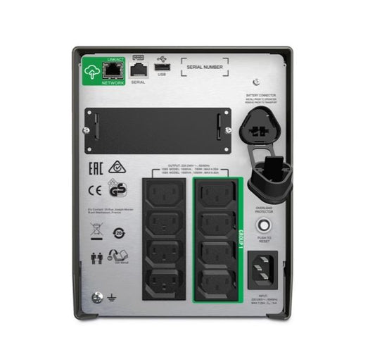 APC Smart-UPS 1500VA/1000W Line Interactive UPS, Tower, 230V/10A Input, 8x IEC C13 Outlets, Lead Acid Battery, SmartConnect Port+SmartSlot, AVR, LCD