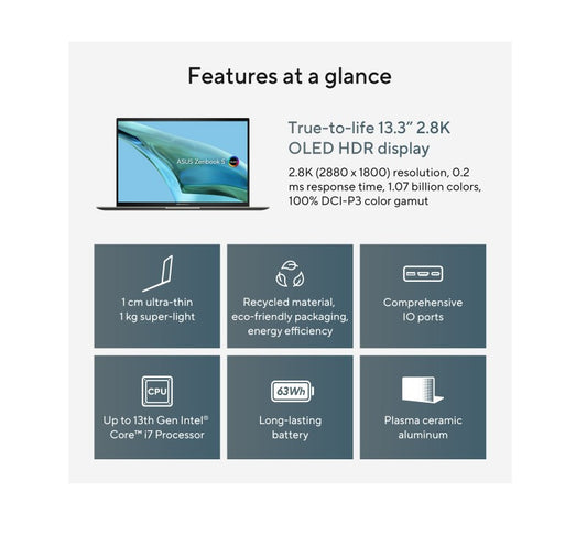 ASUS Zenbook S13 13' OLED Intel Core Ultra 7 Processor 155U 1.7 GHz Windows 11 Home 32GB LPDDR5X 1TB M.2 NVMe PCIe 4.0 SSD Notebook (LS)