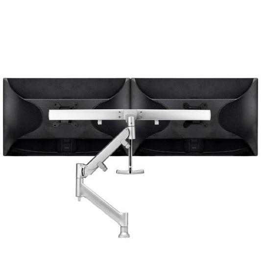 Atdec AWMS-RHXB Tandem Dynamic Dual Monitor Mount. Heavy Duty F-Clamp Desk Fixing. Max Load 2-7kg. Up to 27" screens. Silver