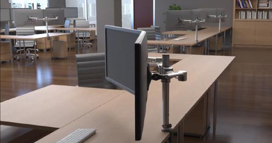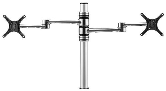 Atdec Dual Monitor Mount Independant Swing Arms on Post. Up to 32", Max load: 8kg (flat), 5.5kg (curved), Bolt-Through and F-Clamp. Silver