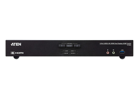 Aten Desktop KVMP Switch 2 Port Dual Display 4k HDMI w/ audio, Cables Included, 2x USB Port, Selection Via Front Panel