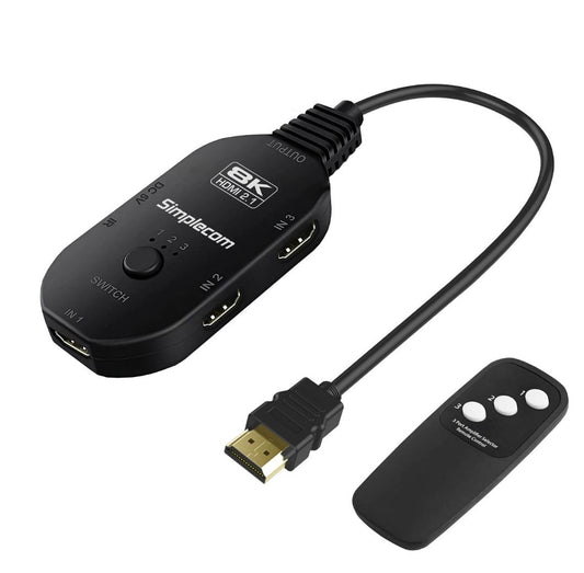 Simplecom CM353 3-Port HDMI 2.1 Switch 3 IN 1 OUT Splitter HDCP 2.3 8K@60Hz