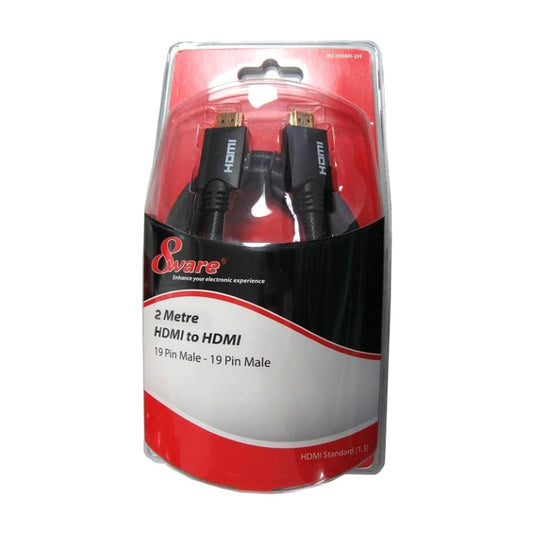 8Ware HDMI Cable 2m - V1.4 19pin M-M Male to Male Gold Plated 3D 1080p Full HD High Speed with Ethernet Blister Pack