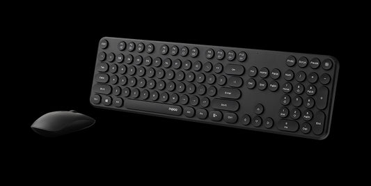 RAPOO Wireless Stylish, Spill-Resistant, Retro Style Round Key, 1000DPI, 2.4G Connection, 10M Range, Nano Receiver, Optical Mouse Keyboard Black