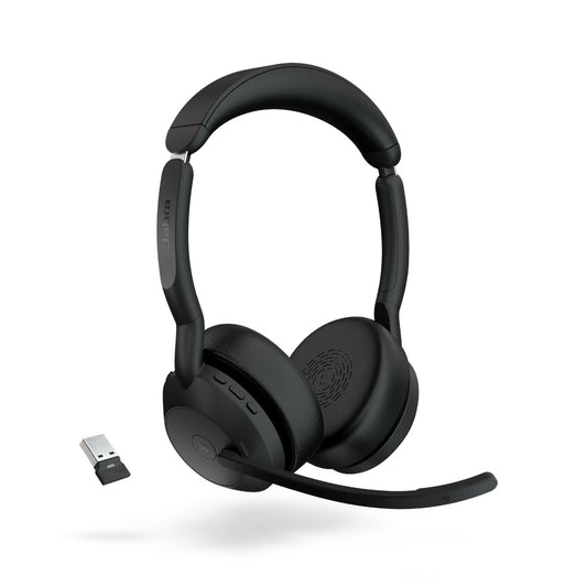 Jabra Evolve2 55, USB A, Stand, MS Teams, Stand Active Noise Cancellation. Link 380 Bluetooth® Adapter ,30m Wireless Range, 18 Hours Battery Life