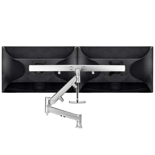 Atdec AWMS-RHXB Tandem Dynamic Dual Monitor Mount. Grommet Clamp Desk Fixing. Max Load 2-7kg. Up to 27" screens. Silver