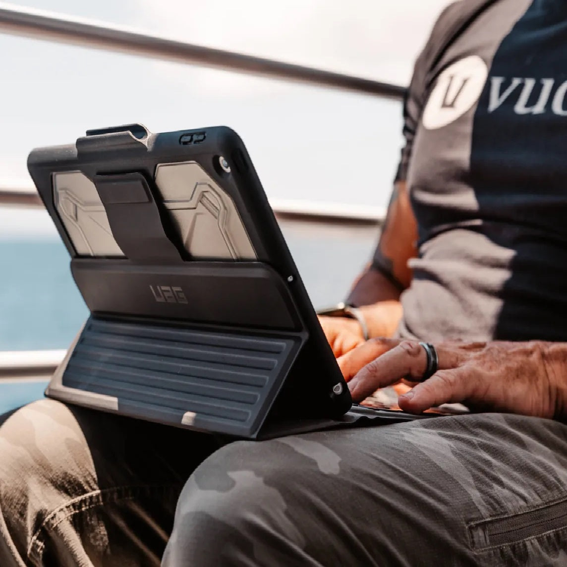 The UAG Rugged Bluetooth Keyboard with Trackpad utilizes a rugged, non-slip exterior and other premium features that represent UAG’s commitment to protection. With Bluetooth connectivity, the rugged keyboard offers a superior laptop-style typing experience and tracking. Featuring a spill-resistant keyboard with comfortably spaced backlit keys. Extra-large multi-touch trackpad with gesture support so you can swipe, tap, pinch, and scroll. Laptop-like experience with the adjustable magnetic stand that offers four viewing modes that let you type, view, sketch, or read. A rechargeable long-lasting battery that allows up to 6 months of battery life (depending on usage). Premium tactical grip exterior provides secure handling. Apple Pencil storage so you can have your Pencil close and handy. Work from anywhere with the UAG Rugged Bluetooth keyboard and detachable case.